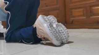 The 17-minutes video includes: latex hood/gloves, long blowjob, magic wand, putting condom on with mouth, some spit, Fila-themed outfit
