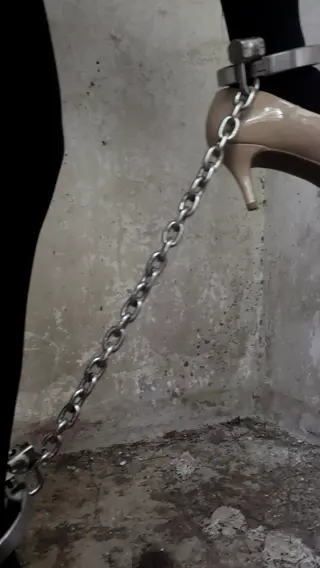 偶然发现一处,山顶电视塔废墟大楼,厚黑,裸色高跟鞋,和锁铐更搭配。亮银色的金属锁住脚踝,由于铁链的长度太长无法控制其长度,只能任由他光面的地面上发出金属的敲击声,和高跟鞋撞击地面的声音,真是令人着迷。
