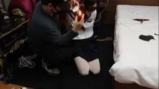 已购99+次 片名:线下真实调教少女名模嗷嗷 进门接受调教 跪在地上被捆绑时候瑟瑟发抖的少女身躯,玩具控制之下还要 强制叼燃烧的蜡烛并接受鞭打调教,一直在痛苦的呜咽,中途脱下嗷嗷的皮鞋换帆布鞋,接受痛苦调教,在怀里害怕的