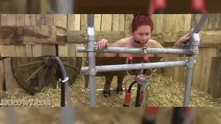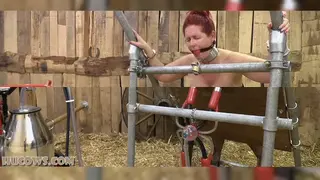 【挤奶系列】我们把她搬到了谷仓。她肯定不再是秘书了!她的新生活在农场里,我们(按照要求)用最强大的机器给她挤奶:红奶牛挤奶机。Many of you have asked about Manuela, our captured MILF secretary HuCow. Yes, she is here permanently and we are milking her regularly. She is even available for private sessions, and some of you have already been here to massage and milk Manuela’s gorgeous udders. We have moved her to the barn. She is definitely not a secretary anymore! Her new life is here on the farm, crawling around in her collar, getting milked and restrained. We milked her with the most powerful machine (as requested): the red cow milker. And after her milking we clamped her sore nipples again! Manuela did not like that at all, clamping after milking is very painful! But what can she do… she is a HuCow now.