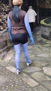 大S穿上她喜欢的全身连体丝袜和高跟鞋。 去找庄园的老板。要跟老板商量。要在他那里拍摄。问了好多人都没有找到老板。 不知道有没有把那些人射到…