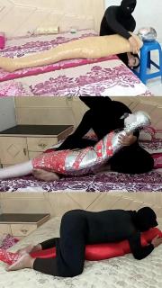 A girl is wrapped into a mummy in layers until her body stiffens. It was planned to be wrapped up to 6 layers, but apparently the slave couldn't stand it and asked to stop when it was about to be wrapped in 6 layers. The girl's stiff body was then toyed with, lifted and wrapped in spandex.