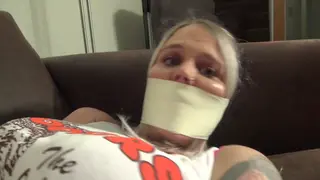 Nichole Hooters Hostage pt 1; bound and tape wrap gagged