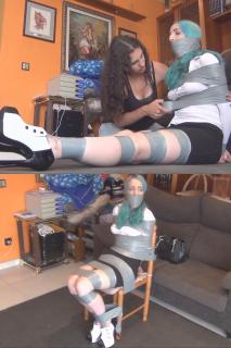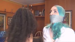 莉兹·彩虹今天开始新工作啦!她又高兴又兴奋。她已经准备好出门了,不想第一天就迟到!当她拿起包准备出门时,突然有人袭击了她。是西比尔!西比尔是莉兹今天这份工作的另一位应聘者。“你在干什么!!!”西比尔对莉兹非常生气,她觉得莉兹作弊了。“那份工作本来是我的!”“不……放开我……呜 ... “喂?是的,我是莉兹·雷恩博。很抱歉,我决定辞职了。” “啊 ... “太棒了!”,“MMMMMMMMMMMMMMMMMMMMMPPPPPPPPPPPPPPPPPPPPHHHHHHHHHHHHH!!!!!!!!!!!!!!!!!!!!!!!!”。莉兹又气又恼!西比尔竟然抢了她的工作!现在她竟然跑去办公室,把莉兹绑起来堵住嘴巴,丢在那里!“MMMMMMMMMMMMMPPPPPPPPPPPPPHHHHHHHHHHHHHHH!!!!!!!!!!!!!!!”。Liz Rainbow is starting a new job today! She's so happy and excited. She's ready to leave, she doesn't want to be late the first day! When she picks her bag to leave home, someone assaults her. Its Sibyl! Sibyl was the other applicant to the job Liz is starting today. “What are you doing!!!!”. Sibyl is very mad with Liz, she thinks she cheated or something. “That job was mine!”, “Noooo let me go..... MMMMMMMMMMPPPPPPPPPPPPPHHHHHHHHHH!!!!!!!!!”. Sibyl removes Liz's panties and uses them to gag her with tape! She ties Liz Rainbow really tight with tape. “Now let's call the office to tell them you decided to leave ^^”, “MMMMMMMMMMMMMMMMMMPPPPPPPPPPPPPPPPHHHHHHHHHHH!!!!!!!!!!!!!”. “Hello? Yes, Im Liz Rainbow. Im sorry but I've decided to leave the job”, “MMMMMMMMMMMMMMMMMMMMMMMMMMMPPPPPPPPPPPPPPPPPPPPPPPPPPPPPPHHHHHHHHHHHHHHHHH!!!!!!!!!!!!!. OMG Liz is so desperate! She can only struggle and moan while Sibyl uses her phone! Sibyl ties Liz on a chair. After a few minutes, Sibyl's phone starts to ring. “Yes? Oh! Liz didn't go to work and you decided to contract me? That's excelent!”, “MMMMMMMMMMMMMMMMMMMPPPPPPPPPPPPPPPPPPPPHHHHHHHHHHHH!!!!!!!!!!!!!!!!!!!!!!!”. Liz is so angry and frustated! Sibyl just stole her job! And now she leaves to the office and leaves her there tied up and gagged! “MMMMMMMMMMMMMPPPPPPPPPPPPPHHHHHHHHHHHHHH!!!!!!!!!!!!!!!”.