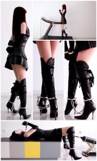 已购60次 片名:锁着铐镣跳舞的皮裙肉丝过膝高跟长靴+金属GS、TD、电动PJ与跑步机