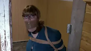 Stan is the caretaker in a company and spends some of his breaks in a storrage room with secret drinking. But now he can't find his alcohol stock and while searching, he becomes suprised by Chrissina, one of the secretaries. The sneaky Bimbo found out about his little secret and now she tries boldly to blackmails Stan with this infos, thinking she's definetly in a unrisky, better position. But she underestimates Stan's will to protect his problem and so, after she offered her bold conditions, she becomes quick and brutally overwhelmed by the unimpressed caretaker-brute. The buxom brat earns a proper restriction with tight ropes arround her voluptous curves and becomes also muzzled by a big mouth-packing wich's sealed with package-tape wrapped arround her head! Desperate sturggling and moaning in her captivation, the big boobed secretary got left all alone in the room to get some time to overthink her way-too-bold blackmail-try. At workend Stan returns to his still bundled-up workmate and offers her to let her go if she forget about his secret but he only earns some unintelligibel threatenings by the bound and gagged Chrissina.
