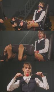 尽情欣赏吧!Meet the stunning Anfisa in this playful nylon-and-barefoot tickling session. She steps into the studio looking curious and elegant, admiring the wooden stocks and the assortment of tools laid out beside them. After a moment of exploration, Anfisa confidently slips a ballgag harness between her lips, buckling it herself before taking her place on the bench.