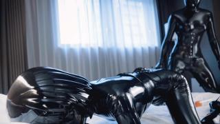 四つん這いの黒い娘ちゃんにオモチャを挿入していきます。