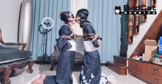 已购17次 片名:【BadCat】【妙妙大小姐调教两个和服侍女 雪儿咲希 卑微受罚】【咲希X妙妙X雪儿】【捆绑 紧缚 双人口球 揉熊】