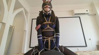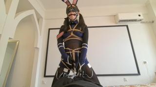 已购35次 片名:【小sao兔】连体油光黑丝+大字缚 震动强高+电击+SP ZW+驷马+口暴含精+贞操锁+内置TD+电击+蟹缚+乳胶头套ZX