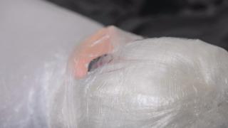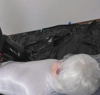ラップでグルグル巻きにして動けない状態の娘をラバーを着たRinkaちゃんがたっぷり責めちゃいます????