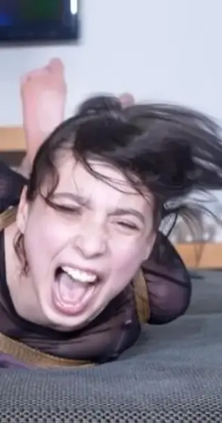 In a flash of dominant authority, Fiddler ties Cloudy tightly in her skimpy lingerie, securing her into a strict hogtie right there on the couch. Her bare feet dangle vulnerably, exposed and helpless. He places the forgotten book in front of her face, demanding she read it aloud as punishment for her laziness. Thinking it's all a game, she smirks and stalls. That's when the real discipline begins: sharp strikes from a cat o' nine tails lash across her sensitive soles, making her yelp and squirm in the unyielding ropes.