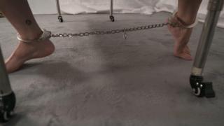 这一次终于有机会整治一下雪碧逃脱偷懒的坏习惯。刚刚发明了铁架小车结合木枷的新固定方式,准备拿雪碧开刀,木枷固定好还没上镣铐,就出去接电话了。这时候她用小眼神看到机会来了,就开始搞小动作了,脱掉鞋子用脚摸索到开木枷的小扳手,用脚趾夹住想送到手里,试了几次,哪有那么容易,本主及时赶回,先用镣铐把脚铐牢,手上也加了手铐。不是最怕电击吗,那就好好电一下偷拿钥匙的手和脚,当然,其他地方也不能错过,当电她胸口时,她竟害怕到把36D的胸来回甩起来,还挺出乎意料的,最大的惩罚莫过于雪碧平时推脱使用的筋膜枪,这玩意太厉害,本S的习惯是一次就开到最大档位,很快就让可怜的雪碧求饶了,经常回味雪碧那撩人呻吟声,这次能感受到她声音里是充满惶恐的,经过筋膜枪的洗礼,看她整个人都消停了。