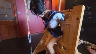 已购99+次 片名:【意之窗原创】【汤圆】真空袋窒息+固定木质刑架+绳子勒B+滴蜡+Zhen动棒tj+口球流口水
