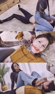 Aly freezes. She tries to deny it. She tries to lie. However, Dolly does not want explanations. She does not want excuses.So, she places a ballgag in Aly's mouth. Aly falls silent. The game ends. The punishment begins.