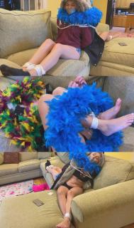 欢迎来到“热座”,罗茜·萨汀斯主持的这档节目以互相调侃为主题。布莱克·拉维斯塔是本期嘉宾,罗茜可要好好“招待”她一番了。布莱克偷了她的皮草外套,为了激怒她,罗茜把她绑了起来,还用羽毛围巾把她裹了起来。她不停地挠她痒痒、戏弄她,直到萨姆出现,罗茜这才落入他的掌控。实际上,两个女孩都落入了他的掌控。接下来会发生什么呢?!Welcome to the Hot Seat, where Rosie Satins hosts a show based on talking trash. Blake Lavista is the featured guest, and Rosie is letting her have it. Blake stole her fur jacket, and to push her, Rosie ties her up and wraps a feather boa around her. She continues to tickle and tease her until Sam arrives, and Rosie is at his mercy. Actually both girls are. What happens?!