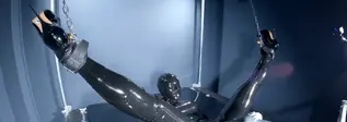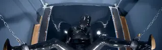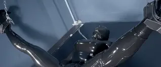 European and American promiscuous women wear black single mouthed full coverage latex clothes and high heels, with their limbs fixed on latex beds. Waves of excitement kigurumi kept coming from below, as two dildos launched fierce attacks, thrusting and thrusting into the double holes exposed from the zentai tight fitting clothes. Above, there was a magic wand that continued to vibrate, and the slut lost herself in each climax .....