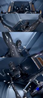 欧美淫荡妇女身着黑色单嘴孔头套全包乳胶衣高跟鞋,四肢固定在乳胶床上。下面不断传来阵阵扩张刺激,两个dildo不断对从全包紧身衣露出的双洞发起猛攻击打抽插,上方还有一个魔法棒持续震动,荡妇在一次次高潮快感中迷失自我...