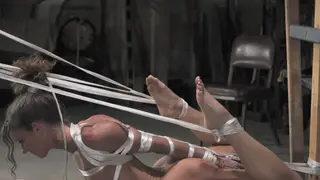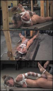 This Episode starts where Episode 5 ended. Now nude, Portia waits patiently for me. I grab her wrists and tie them behind her back. I bind her elbows together as well. Even though we are "Labbing" out ties here, that does not mean that I'm not going to have some fun. I manhandle portia and order her to twirl around for us. Her body in bondage is worth seeing from all perspectives. I soon place her face down on the cart and start adding ropes for a back bend hogtie variation. This is where Episode 6 ends.