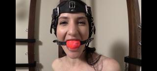 Starring Arielle Lane. Bondage lady Arielle does not need to let us know she loves to be tied up, but does so verbally in the beginning minutes of this scene. Working together, Arielle gets rigged off-screen in the JG Leathers built Pony Girl head harness. Also, off screen, I fit her with a new pair of thigh high boots she had not seen before. Additional new items for Arielle are the locked chastity belt, and feminine finger control mitts in black. Arielle got the matching red finger mitt pair in a scene we filmed a year later titled Sensory Deprivation, which unbeknownst to me until I started editing this video, I refer to here as a potential future play session. We share conversation as Arielle, who can see herself in a mirror, struts with glee in her restraints. Arielle asks about the head harness accessories she knows are available. I ask if she would like help with them. She responds with a gleeful smile, “Yes please.” A ball gag sunk deep behind her teeth appears. Arielle’s bondage pleasure feelings rise a notch as she continues her sensual prance. Although only able to respond in garbled gag-talk, I continue to converse with her, and she has a lot to say. Agreeing with me that it is fun to add stuff, the blindfold accessory appears. Arielle can still walk around, but she does not know exactly where she is. Her bondage pleasure increases once again, and she gets quieter, now only emitting soft and sultry bondage pleasure lust. That happens often when a playmate is blindfolded. Next, we see Arielle strapped tight to a post. The muzzle accessory has been added to the head harness over the ball gag and blindfold. For the final seven minutes, every breath includes a heavy dose of leather. Sensory deprived and immobilized, Arielle shows no desire to be released.