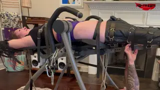 Ms. Sabel is the test subject for this test. She shall be leather strapped to the Terror Totter, arms sheathed in leather, and buckled overhead. Her legs will be sheathed in the same fashion. Her big toes are to be pulled backward and leashed together, with another strap buckled to create a leash, pulling her feet back into the extreme flex position, leaving her unable to scrunch her feet or protect them in any way while this is conducted.
