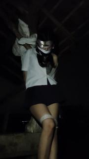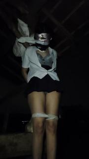 Putri 在野外小亭自缚。 嘴巴被堵上而且蒙眼,只能无助的在路边挣扎 看了都觉得刺激 模特独自路边蒙眼嘟嘴 手铐钥匙也不在身上 只能无助的等待朋友的到来