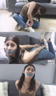 汉娜·克拉克很兴奋,因为她被要求参加一个戴着手铐的逃脱挑战,但她不知道的是,她的嘴上还贴着一条灰色胶带,这样他们就能听到她在试图挣脱时呻吟和挣扎的声音,我们不知道她是否会成功,也不知道她是否会享受这个过程!Hanna Clark is excited because she has been challenged to an escape challenge with handcuffs, but what she doesn't know is that it also includes a strip of gray tape over her mouth so they can hear her moan and struggle as she tries to free herself, something we don't know if she will succeed at or if she will enjoy!
