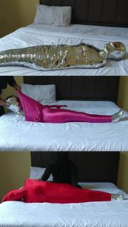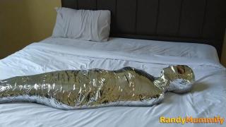 A Newly Known Girl Of Pakistani Descent Offered Her First Try To Become A Mummy With Chrome Duct Tape. After being helpless, this girl's body was wrapped again in two layers of leggings so that the girl's waist felt very tight.