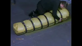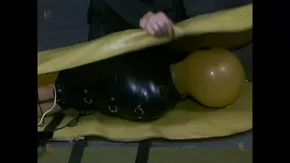 Cowgirl accept this very severe experience in full latex confinment. Her deepest experience. First she have to put this complete transparent rubber suit, and mittens and socks. Then i cover her face with a transparent rubber mask. I insert electric stimulators on her breasts, in her sex and ass. She is restrained in a rubber straitjacket. Then she is lying down and i put an inflatable rubber hood on her face. An inflatable rubber sleepsack cover her. Tight and strapped. I pum air inside to inflate it. Now she's on my mercy. Confined in inflatable rubber. She receive electric shocks in her intimate parts, she screamed but i go on. After a while, i remove the sleepsack. She's totally exhausted. Some tears in her eyes. She deserve a reward. A good fucking with my rubber slave. Breathplay, transparent rubber suit, blowjob, hoof boots, straitjacket, inflatable hood, inflatable sleepsack, electric torture, pilori, mummification, latex restraints, insex, cowgirl, blonde, punishment, rubber bondage