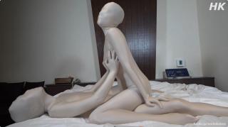 平泉穿着带入体逼套的zentai,把逼套抹上润滑剂然后塞进逼里,随后被男伴各种姿势狠狠抽插猛操。