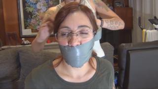 向莉莉卡要钱有点危险。如果你还钱,她会很友好可爱;但如果你不还,最好赶紧跑。莉维和蒂奥妮欠莉莉卡钱,她等得不耐烦了。她闯进她们的房子,等着她们回来。第一个到的是莉维。“你在这里干什么?你怎么进来的?”“我要我的钱!”“不!这可不是……什么鬼!”莉莉卡袭击了她,用绳子绑住她的双手,把她按在椅子上。 “我要我的钱,我受够了你的借口!”“可是你……莉莉卡捂住莉维的嘴,脱掉她的袜子,把袜子塞进莉维的嘴里,然后用胶带封住她的嘴。她用绳子把莉维绑在椅子上,用了好多绳子!这时,蒂奥妮来了。“这到底是怎么回事?”莉莉卡立刻袭击她,绑住她的双手。“这就是你欠我钱的下场!”“等等!……”蒂奥妮也被袜子和胶带封住了嘴。莉莉卡用绳子把她们两个都绑了起来。但她想确保她们不会逃跑,所以又用胶带把她们绑了起来!现在,莉莉卡抢过她的手机,开始在Instagram上直播! “我要让所有人看看欠我钱的下场!”“我的天哪,这些女孩太丢人了!她们的朋友和网络上的人都在看着她们被绑起来堵住嘴!这太尴尬了!”“哼,如果你们不还钱,我就把你们家里所有的东西都偷走。再见啦,女孩们!”莉维和蒂奥妮真的遇到麻烦了!她们挣扎着,但毫无用处,她们完全无助!Asking Liricaa for money is a bit dangerous. She's friendly and lovely if you return it back, but if you don't, then you better run. Livay and Thyone owe money to Liricaa, and she's had enough of waiting. She breaks into their house and waits for them. First one in arrive is Livay. “What are you doing here? How did you enter?”, “I want my money!”, “No! This is no way to.... WTF!”. Liricaa assaults her. Ties her hands with rope and sits her in a chair. “I want my money and Im tired of excuses!”, “But what are you.... Liricaa handgags Livay. She removes Livay's socks. She stuffs Livay's mouth with the socks and gags her with a huge tapegag. She ties her to the chair with rope, lots of rope! Then is Thyone who arrives. “What the hell is happening here?”, Liricaa immediatelly assualts her and ties her hands,.“This is what happens when you owe me money!”, “But wait!!... . Thyone is also gagged with her socks and a huge tapegag. Liricaa ties them both with rope. But she wants to make sure they won't escape, so she ties them with tape too! Now Liricaa gabs her phone and starts an instagram live streaming! “Im gonna show everybody what happens when you owe me money!”, “ OMG the girls are so humiliated! All their friends and people on the network is watching them tied up and gagged! This is so embarassing! “Well, If you don't pay me, I'll steal everything you've got in the house. See you girls”, Livay and Thyone are in real trouble! They struggle but is useless, they are totally helpless!