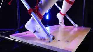 【拘束屋】第二期,特制拘束架与无法动弹的完全拘束,感谢VVA的拉菲兔Cos出镜。这次的拘束架有个小机关,必须踮着脚才能确保脖子上的松度,一旦踮着的脚瘫软下来了,迎接她的将是无法阻挡的窒息play