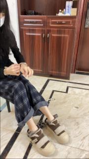 开头为大家展示手铐脚镣已锁死,手铐卡到最紧,最后一个齿,这个女生跟腱很好看,比较高挑,这次穿了一双白色船袜,因为脚后跟已经被脚镣磨破了,所以保护一下。