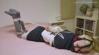 你的室友今天穿着白色紧身裤和可爱的蓝色羊毛连衣裙,看起来格外可爱。而且,她还喜欢捆绑游戏!快点,拿出绳子,把甜美的艾米丽好好绑起来!别忘了也把她的嘴堵上。哦,艾米丽很喜欢这样。现在她可以尽情享受被捆绑的感觉,而你也可以好好欣赏被绑女孩的画面了Your flatmate looks particularly cute today in her white tights and cute blue wool dress. And what's more, she loves bondage games! So come on, get out the ropes and tie sweet Emily up properly! And don't forget to gag her properly too. Oh yes, Emily likes that very much. And now she can really enjoy being tied up and you can enjoy the sight of the tied-up girl.