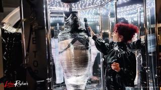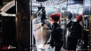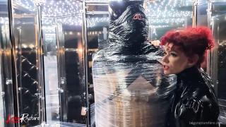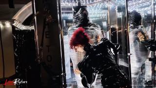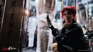 A day in my job as a mistress at Studio Black Fun. Job? No. Of course not. It's much more than just a job. It's my passion, my fulfilment, my desire. In my sessions, I live out my guests' kinks together with them. I cover myself in rubber from head to toe. I play with breath control on myself or I am encased in nylon from head to toe. In this session, a dominant rubber outfit was requested. Very easy. Mummifying my guest made me quite horny. I had to go straight into the latex vacuum bed after the session.