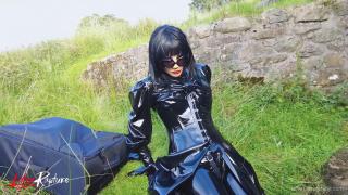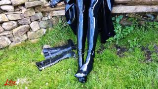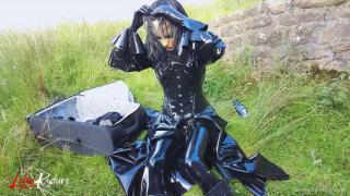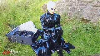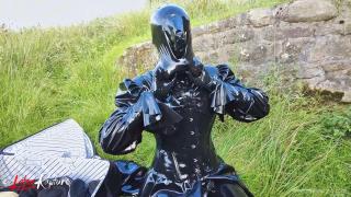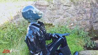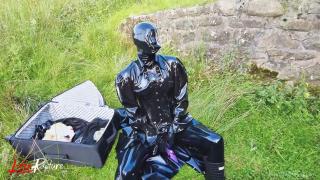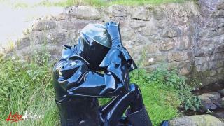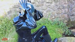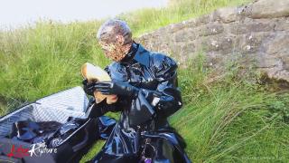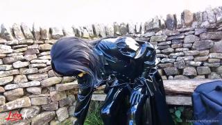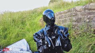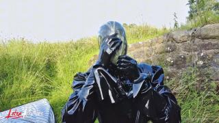 Double rubberized, I walked to my next destination. My rubber face was not noticed so I decided to continue the journey by hitchhiking. Of course, my pussy was faster and had to get relieved. It was time for the double rebreather isolation in public.