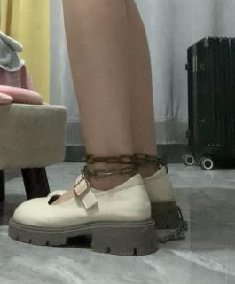 女大学生在家玩绳子捆脚,后来找到了一根铁链来锁脚,铁链看着有点年头了,用两个挂锁,全都是妹子自拍的,比较有意思,日常感偷感很足,后面有了脚镣,各种玩。