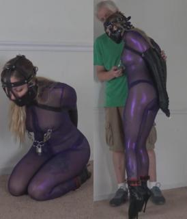 视频一开始,伊森身穿紫色网状紧身衣和芭蕾舞鞋,努力保持平衡。大卫走上前去,迅速用束缚带将她的双臂束缚住,破坏了她的平衡。脚踝也被铐住,嘴里塞上了口塞。大卫捏了捏她的乳头,折磨了一番,然后把她放到地上。大卫离开后,又拿来一些夹子,给她增添更多刺激。可怜的伊森被戴上重物,遭受了更多折磨,直到“服刑期”结束。Isean is in a purple mesh catsuit and ballet boots struggling to maintain her balance at the start of this clip. David moves in and quickly undermines this by taking her arms away in an armbinder. Cuffs are put onto her ankles before a muzzle gag is added to her head. Her nipples are pinched and tortured a bit by David before moving her to the ground. David leaves her and returns with some clamps to add a bit more stimulation to her scenario. weights and a bit more personal torture are given to poor Isean before she's done serving her time.