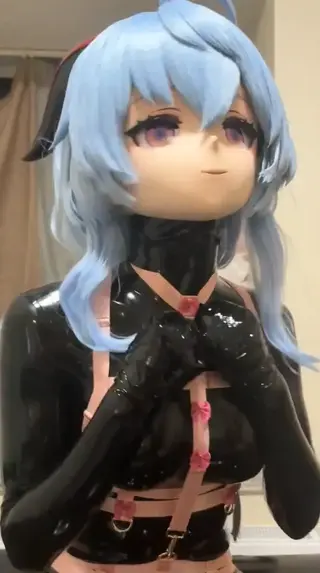 The Kigurumi doll, wrapped in a black all inclusive latex jacket, couldn't say anything. Its fingers were bound into spherical shapes and wrapped in pink turtle shell straps, allowing the coyote's electric shock to stimulate it .....
