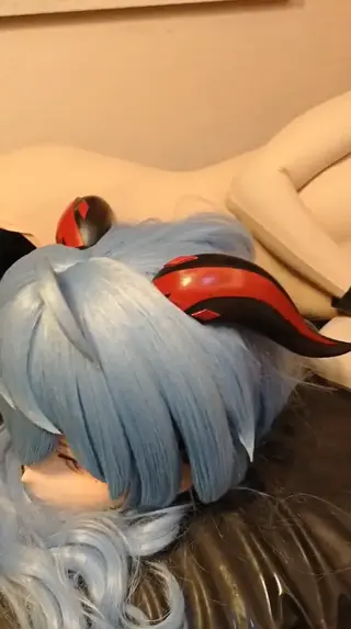某次玩耍的事后,尽管里之人已从全包紧身衣的甘雨娃娃中半脱出来露出全包乳胶衣和卤蛋脑袋,但其主人仍未停止电击刺激,而娃娃只有球形的手......