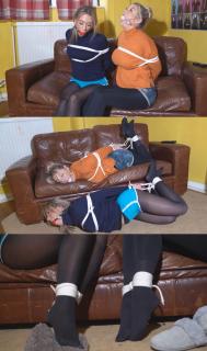 They are soon both tied up in their turtlenecks and dark tights and ballgagged too.