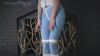 你给她戴上手腕和肘部的绳子,让她在壁炉台上扭来扭去,对着你扭动屁股,然后你决定让她放下头发,在地板上好好放松一会儿,被紧紧地捆绑起来!Madalynn is wearing a light blue tight spandex bodysuit, and puts on her thick white belt and patent knee high white boots after she gags herself with a light pink ball gag. She rubs her hands all over the slick tight fabric and teases you with those eyes of hers while trying to articulate through the ballgag.