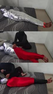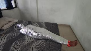 A Pakistani girl was wrapped tightly with black plastic wrap and then covered again with chrome tape. The helpless body of the hadith was then put on tight leggings. After being completely helpless, when she was about to be covered with black tape, the slave experienced shortness of breath so that the scene immediately entered the restriction of breathing until this girl cried in resignation.