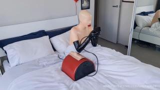 肉色的乳胶娃娃自己坐在电动玩具上面享受这快感