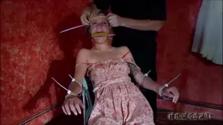 Part one of Straitjacket features PINKY cable-tied to an antique dentist chair that's worth every penny. The elegant metal chair enhances the delicious lines and curves of PINKY's body as she strains against the tightly constricting bondage that renders her utterly helpless. Clamps wound with copper wire are bolted so tight to her nipples that, well, you just can't squeeze a tit any tighter, even with surgical screws. Pink and lush, her protruding nipples are mouthwatering. PD leaves PINKY with a cunt/clit vibrator in place then drives into town to pick up a couple burgers, a sandwich that PINKY clearly disdains. As PINKY wiggles and squirms against her strict, controlling bondage, PD calls PINKY's cell phone, which just happens to be taped to a voice activated stim. The close connection of copper to nipple, while PINKY is penetrated and vibrated, causes her to have a mind-blowing experience. Bondage extreme, drooling,screaming,chairtied,slim body,shocked,extreme gag
