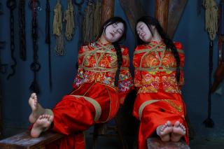 已购26次 片名:【秀禾姐妹花】剧照725张+视频45分钟新模小雨、小晴被土匪抢来五花大绑老虎凳拶子等各种刑具