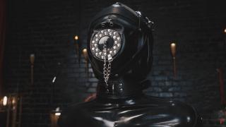 安娜呻吟着,痛苦地扭动着身体,无力地蜷缩着沾满蜡油的脚趾。Anna Luna wakes up bound in ropes, dressed in latex, secured to a support on a rotating turntable. The light grows brighter, and the slow rotation begins.