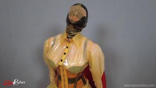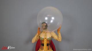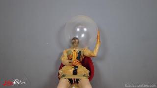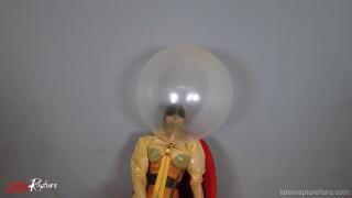 But this connection is now being cut. I pull a transparent latex balloon over my re-breather head.