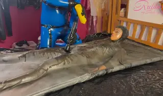 乳胶主人Dom把女M关在一个气密的黑色透明真空乳胶床上,我在真空床里被用多层全包紧身衣和橡胶露眼头套垫着,动弹不得。他用振动器玩弄我湿漉漉的橡胶阴部,并且我真的受不了了…乳胶主人还为女M带上透明眼镜防毒面具玩止息,连连高潮...