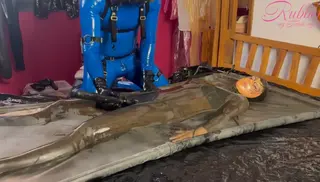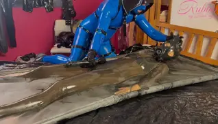 The dom enclosed me in a air tight vacuum latex bed,Rubber Missy was in multilayer of zentai rubber in my vac bed, unable to move.he teased my wet fetish rubber pussy with the vibrator as i really can’t hold it…The latex owner also put on transparent glasses kigurumi and a gas mask for the female M to play breathplay, with repeated orgasms ..